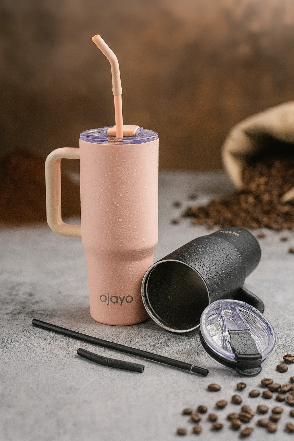 OJAY 1.2 L (40 oz) Double-Wall Insulated Coffee Tumbler with Handle & Straw | Hot & Cold Stainless-Steel Travel Mug for Coffee, Tea & Juice